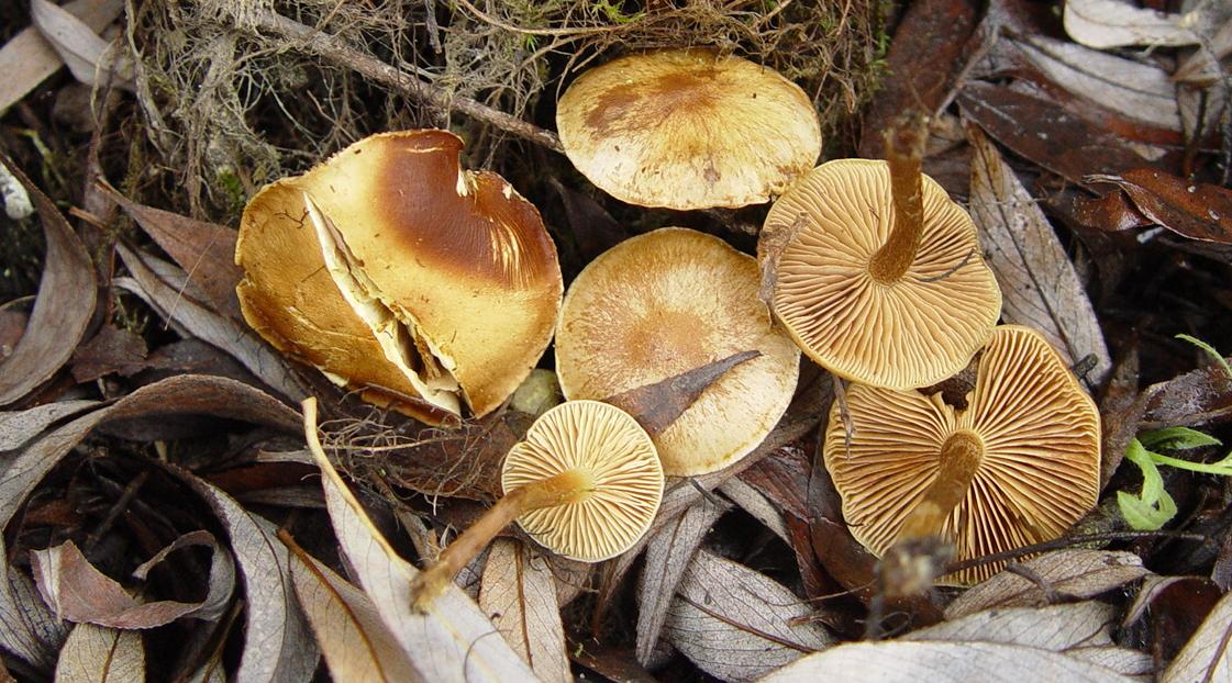 Gleich noch einen hinterher: Pholiota conissans, der Weiden - Schüppling, ist an den Füßen der mangrovenartig wachsenden Weiden in den Abgrabungsteichen auch jedes Jahr zu finden, auch er fruktifiziert in milden Wintern bis in den Februar hinein.