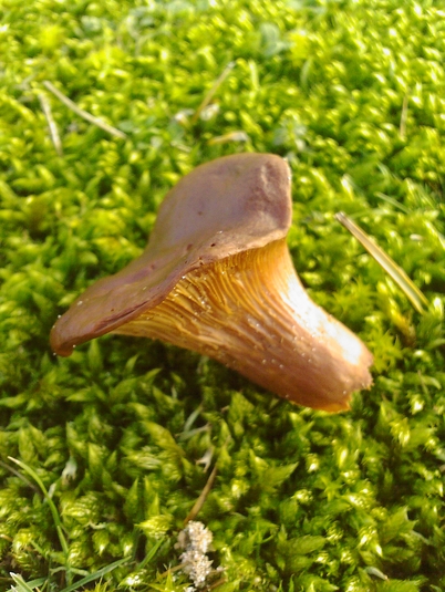 Hi, hier nun einer, bei dem ich überhaupt nicht weiter weiß. Wuchs am Fietspad, also Fahrradweg, in den Dünen. Der kleine sah auch leibhaftig aus wie ein oben dunkelrotbrauner Pfifferling, vom großen zeig ich ein Bild von den Lamellen.