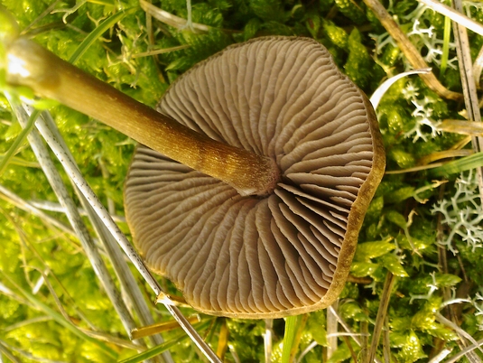 Ja, und dieser? Auch an Fahrradweg und auch dunkle Lamellen und dunkles Sporenpulver und ein wenig scheckig. Ziemlich groß, so ca. 4-5 cm, der Hut.