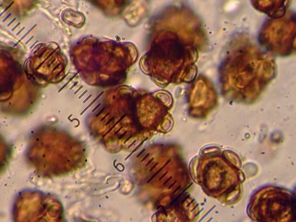 Hier noch die Sporen, die bei Urocystis immer in sogenannten "spore balls" angeordnet sind.