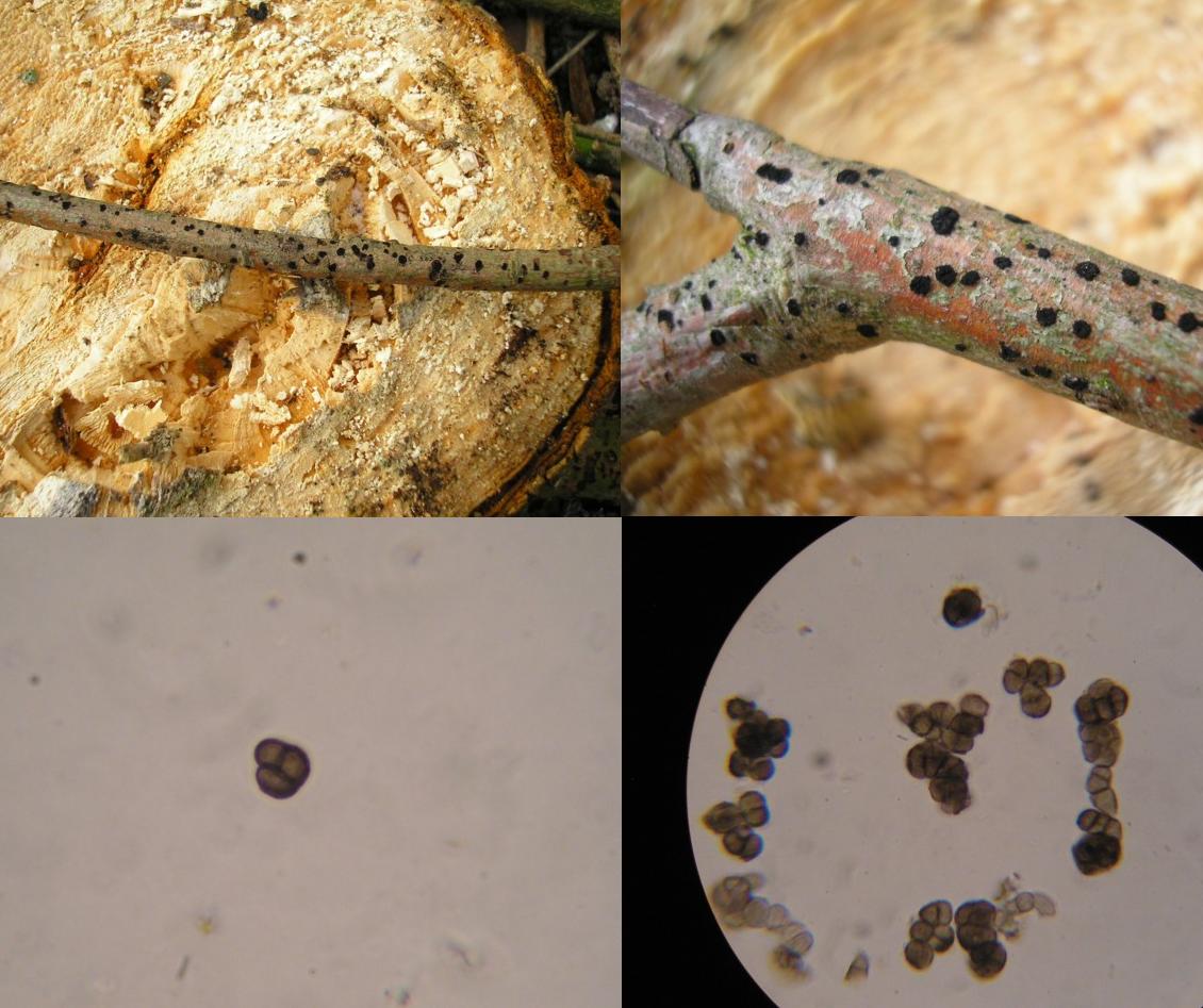 Hiho! Diesen schwarzen, auf die Finger stäubenden Pilz (beim drüberstreichen), habe ich im Februar 2007 an einem auf dem Boden liegenden Laubholzast gefunden. Die Sporen sind Ballen, wenn ich das richtig sehe und im Durchschnitt 10µm. Wer kann helfen? lg Jule