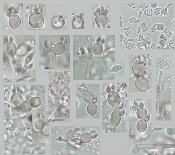 nachdem Ingo ja schon vor einiger Zeit ein Rätsel gestellt hat, bei dem er nur die Mikros gezeigt hat, schließe ich mich hier mit einem eigenen an. Ich könnte den Pilz auch makroskopisch zeigen, aber das wäre noch etwas "fieser" - warum erkläre ich später, wenn der Pilz geraten wird (oder auch nicht). DirkW darf nicht mitraten, denn er kennt die Lösung.