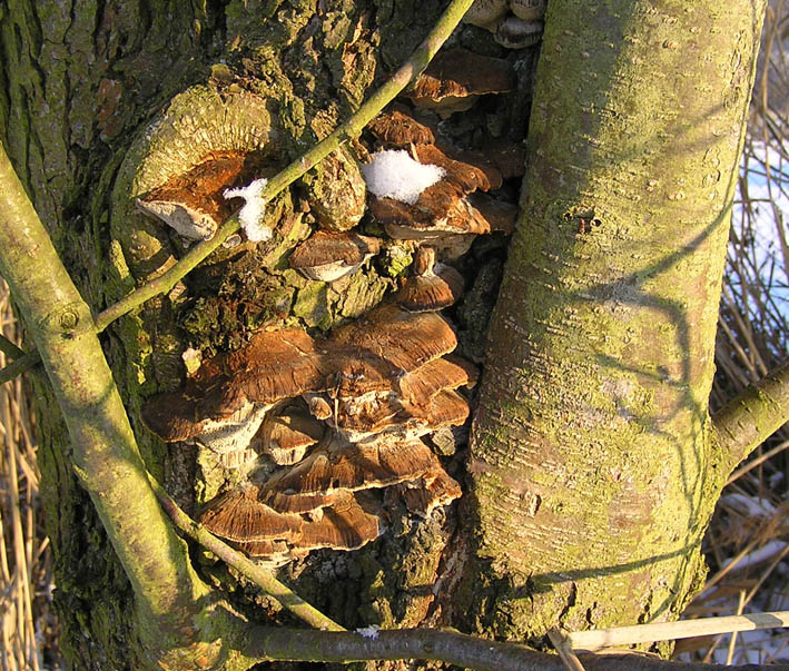 Inzwischen bin ich mir recht sicher, den Erlen-Schillerporling / Strahliger Schillerporling (Inonotus radiatus) gefunden zu haben. Oder hat jemand Einwände? Liebe Grüße