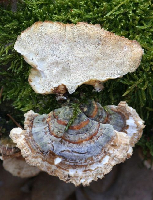 Hallo Ihr, diese wunderschöne Tramete hat mich heute wirklich in Entzücken versetzt, aber ich finde sie irgendwie zu "flauschig" für Coriolus versicolor. Was sagt Ihr? Mal wieder gespannte Grüße Kirsten