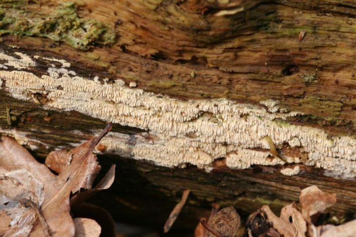 Der Pilz befand sich fast an der Unterseite einen riesigen, liegenden Eiche, die schon keine Rinde mehr hatte. Bin ich mit Schizopora paradoxa richtig?