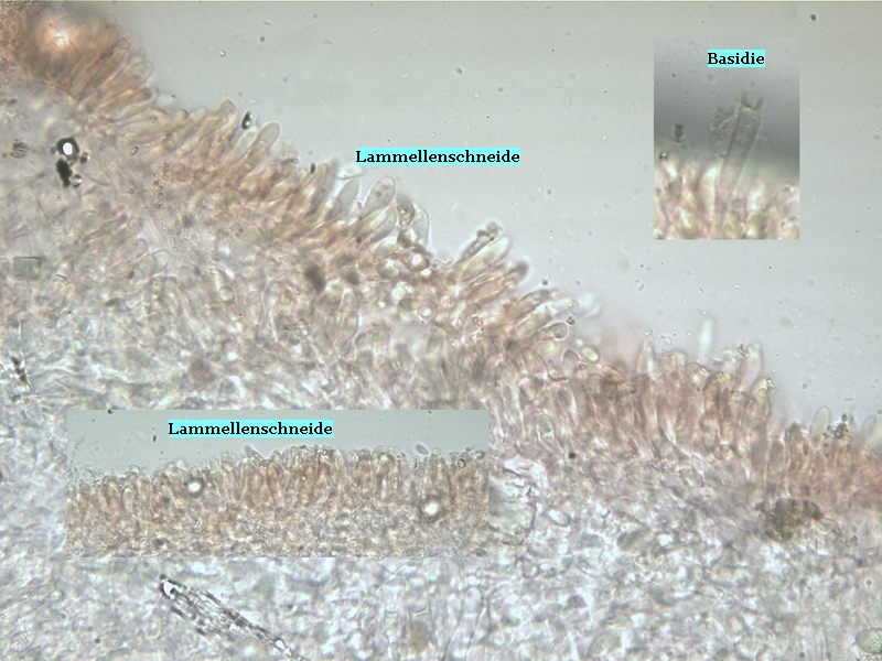 Lieber Andreas, hier hast du noch mal zwei neue Fotos von der Lamellenschneide. Ich seh da nichts. Und eine Basidie.