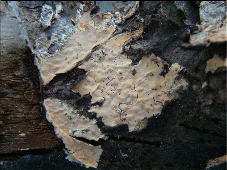 Hausaufgabe ; Rindenpilz an Pappelklotz (nach umdrehen)