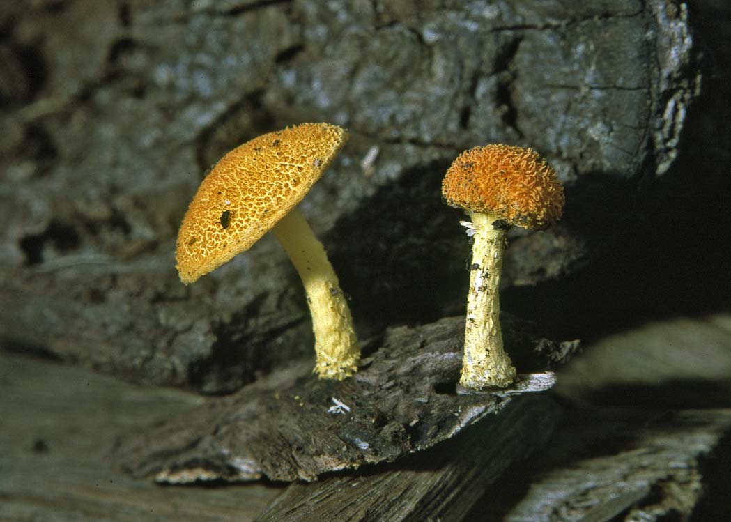 Weit verbreitet in den Regenwäldern Australiens ist auch dieser hübsche Pilz, der oberflächlich an unseren Feuerschüppling (Pholiota flammans) erinnert, aber ein Weißsporer aus der Familie der Tricholomataceae (Ritterlingsartige) ist. Er heißt Cyptotrama aspratum, wächst auf Totholz und kommt auch in vielen anderen Teilen der Welt vor, wo entsprechende Temperaturen herrschen. Der englische Name ist "Gold Tufts", was soviel heißt wie "Goldbüschel" und sich auf die Hutschuppen bezieht. Die hier nicht sichtbaren Lamellen sind weiß. Beste Grüße