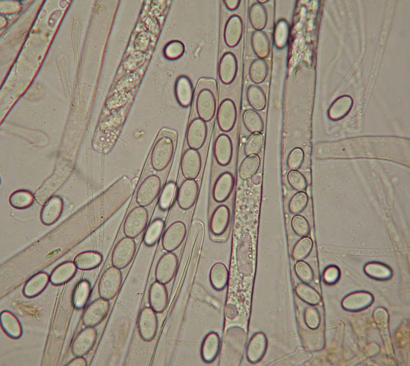 Ganz beachtlich bei einer Fruchtkörpergröße von ca. 7-8 mm. Wir meinen gesehen zu haben, daß die Oberfläche der Sporen nicht glatt sein wird.