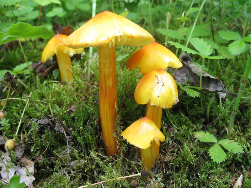 Hallo Pilzfreunde ich war heute eigentlich botanisieren und hab auf Kalk-Magerrasen Orchideen gesucht. An einer trockenen Wegböschung hab ich dann eine Saftlingsfamilie gefunden. Ich hab das Mikroskop noch weggepackt. Vielleicht könnt ihr mir schon mal einen Tipp geben welche Arten da in Frage kommen. Auf alle Fälle eine größere Art. Der größte hatte eine Stiellänge von fast 20 cm.