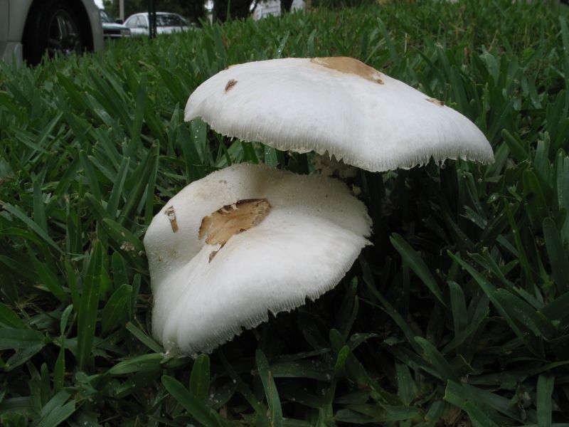 gerade in Florida angekommensind mir auf einem Supermarkt-Parkplatz im Gras folgende Leucoagaricen begegnet.