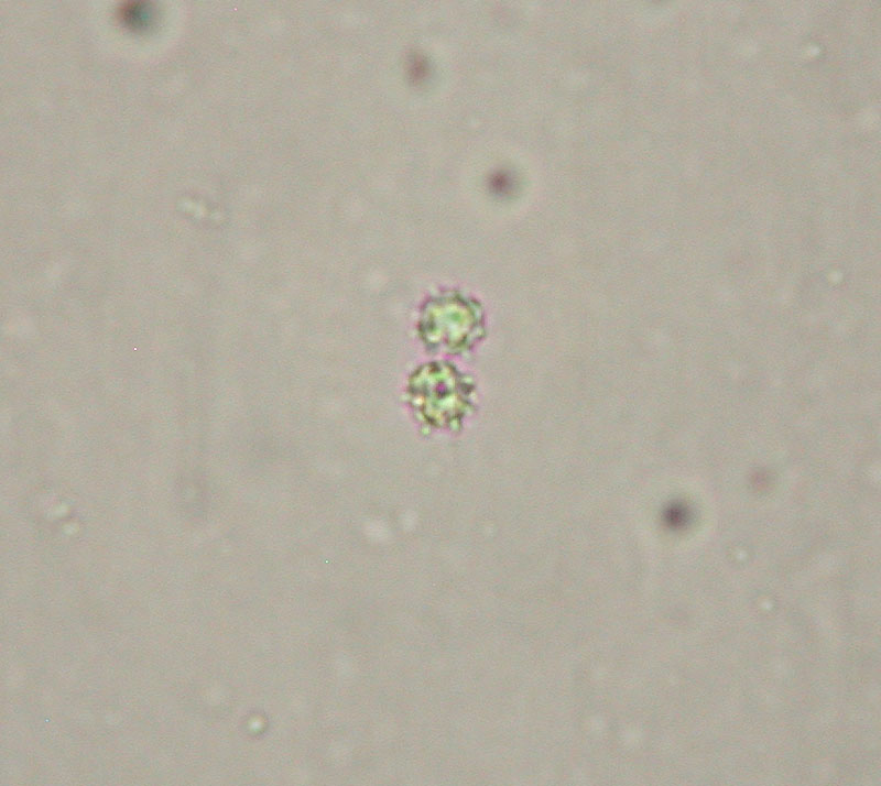 Durch das Mikroskop war das alles wesentlich besser zu sehen. Die Sporen sehen aus wie