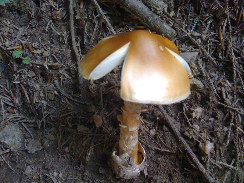 Hallo hier den hab ich auch noch gefunden den etwas älteren aber noch schön anzuscheunden Scheidenstreifling Amanita crocea hoffe das ich richtig damit liege. Greez Oliver