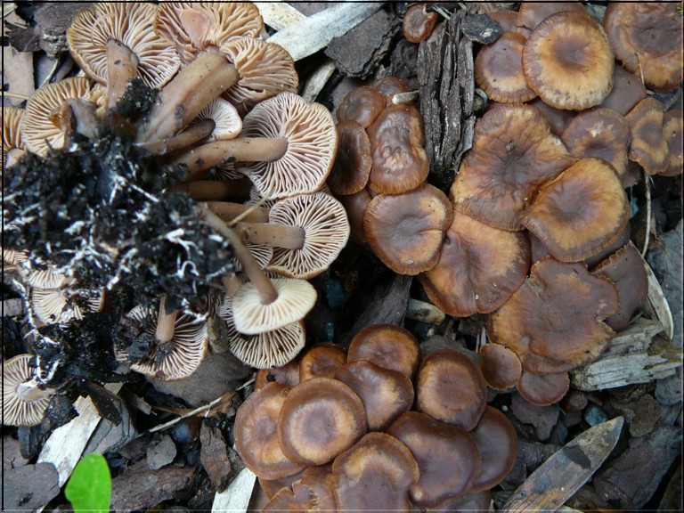 Liebe Pilzfreunde, diese Büschel vertrömen einen unglaublichen Gestank nach liegengelassenen Kohl. Ich denke, hier handelt es sich um Gymnopus impudicus. Fundort Ballenstedt; auf Mulch in einer Parkanlage.