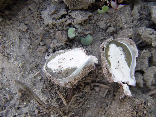 Aufgeschnitten sieht das gerade mal 1,5 - 2 cm runzelige Kügelchen so aus.