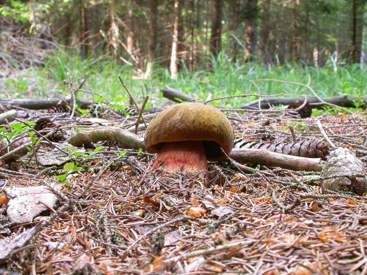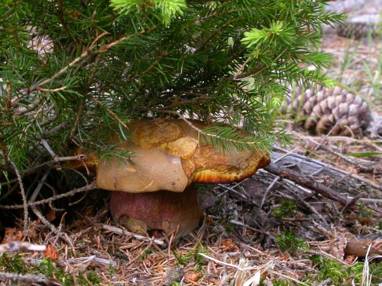 konkurrenzlos wachsen die Flockenstieligen Hexenröhrlinge vor sich hin.