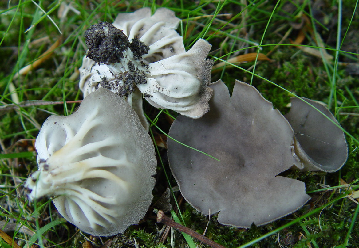 den Pokalrippenbecherling kenne ich eher eben als Pokal, diese hier standen heute in Massen unter den Linden auf dem Friedhof und waren alle flach ausgebreitet - gibts da noch einen ähnlichen?