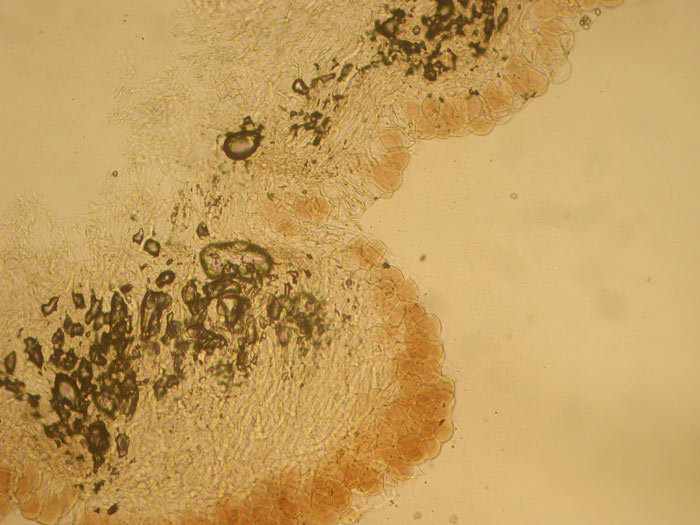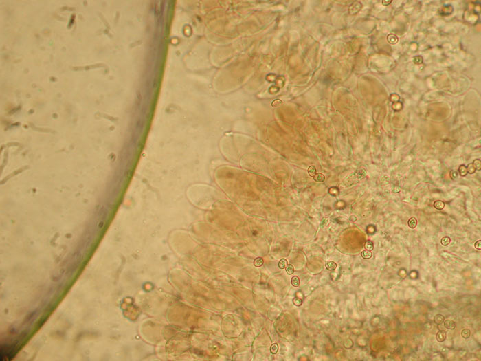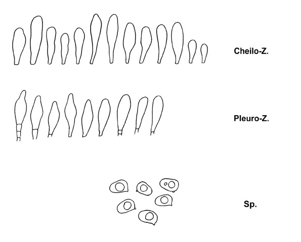 Mikro-Merkmale: Septen ohne Schnallen HDS ausschließlich blasige Zellen, braun pigmentiert Cheilo-Zystiden 30-90 x 10-30