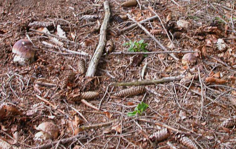 Begeistert sehe ich einen Platz, den die Steinpilze nun auch besiedeln,