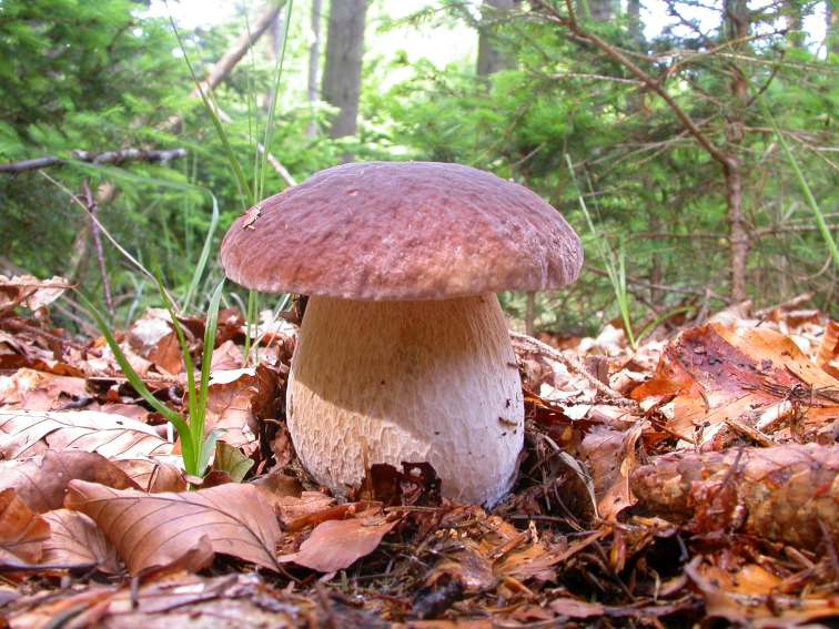 weil hier die weißgraue Form der Steinpilze wachsen kann. Diese Pilze gibt es in den Alpen,