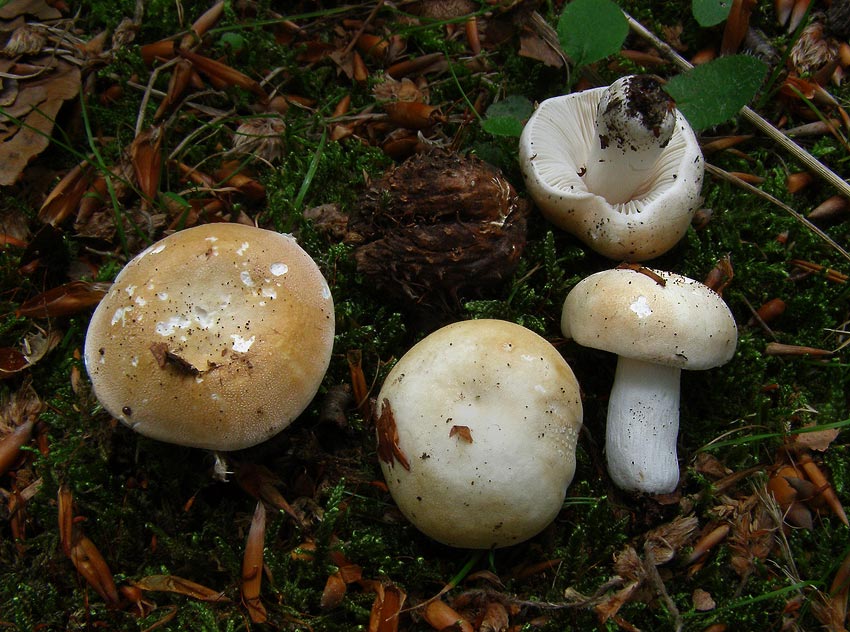 Jochen schickte mir heute diese zwei tollen Funde: Auch wenns nur "Tauben" sind - Raritätenalarm! Russula incarnata/Russula roseoaurantia - Gelbrosa oder Heller Reif-Täubling
