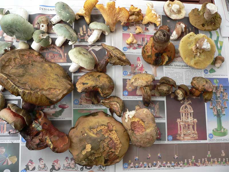 Sogar meine Frau packte die Sammelwut, als wir auf unserem Spaziergang einige schöne, weithin sichtbare Steinpilze entdeckten. Dazu noch Pfifferlinge, Grünfeldrige Täublinge und Netzstielige Hexenpilze.