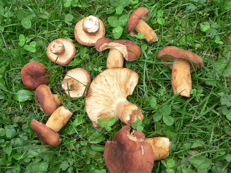Ein Bekannter brachte uns gestern diese Brätlinge. Und ein Rezept: Brätlinge fein reiben, 1-2 Eier mit Salz und Pfeffer verquirlen, unter die geriebenen Pilze mischen, das Ganze braten.