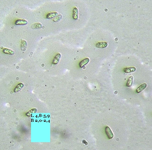 : C. hetieri breite Sporen hat: Lieber Harald Andres, vielleicht nützt es ja: Jch hab von meiner Lepiota hetieri die Sporen genommen, hier hast du das Bild - ein schlechtes zwar (ich bin immer in Hetze, bei allem, was ich zu tun habe), aber immerhin siehst du die Form. (Als "breit" würde ich die nicht bezeichnen - aber Cystolepiota hetieri ist doch wohl identisch mit Lepiota hetieri, oder nicht?.)