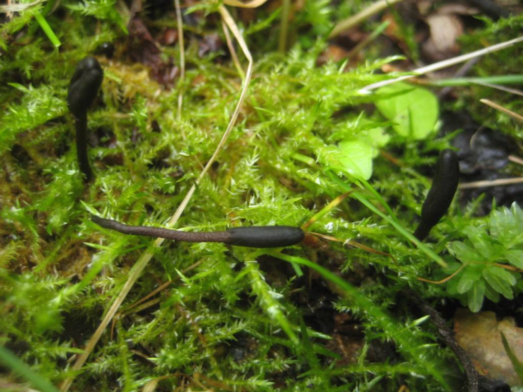 Zunächst: Erdzunge, vermutlich G. fallax (dazu passen die feinschuppigen Stiele und die kommt im gleichen Wald vor - das Mikroskop muss erst mal warten). Gefunden bei einer kleinen Rast unter dem Tisch einer Sitzbank-Gruppe im Wald - ein wahrhafter Zufallsfund ... dachte wirklich nicht an Pilze und sah die Dinger aus ca. 1 m Abstand auf der Bank lümmelnd.