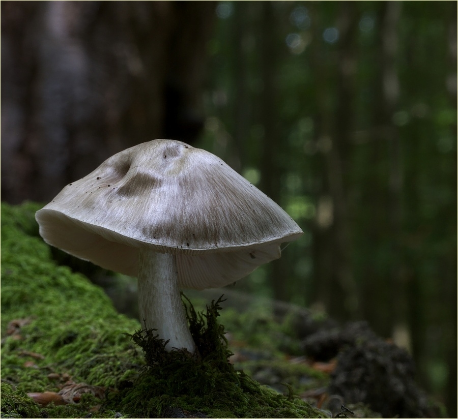 vor zwei Wochen fand ich auf dem liegenden Stamm einer alten Rotbuche diesen Pilz. Ich vermute, dass es sich um einen Dachpilz handelte, kannte ihn aber nicht. Da er weit und breit der einzige seiner Art war, habe ich ihn unangetastel gelassen und kann daher auch keine weiteren Merkmale nennen.