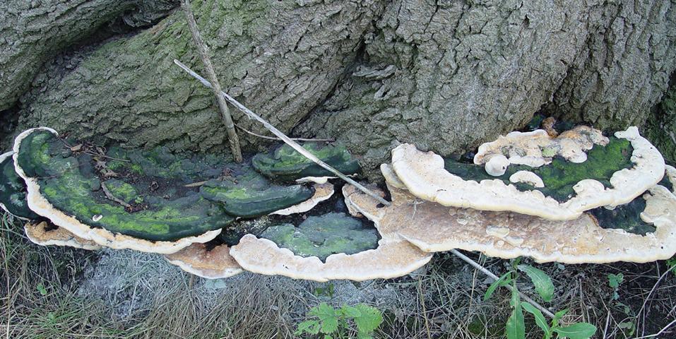 Es ist eigentlich feucht genug, die jahreszeit stimmt und trotzdem gibts kaum was. Also musste ich eine mir bekannte Esche aufsuchen um zu schauen ob Perenniporia fraxinea wenigstens einen Wachstumsschub hat, voriges Jahr fiel nämlich auch der komplett aus. Die schwarzen, teilweise veralgten Konsolenteile stammen noch von 2007.
