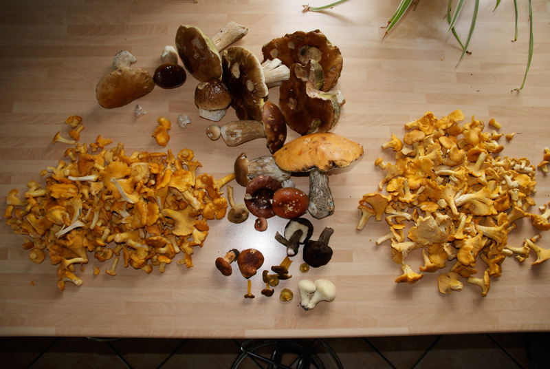 Am Samstag war ich für zwei Stunden im Wald unterwegs und kam mit ein paar Speisepilzen nach Hause.