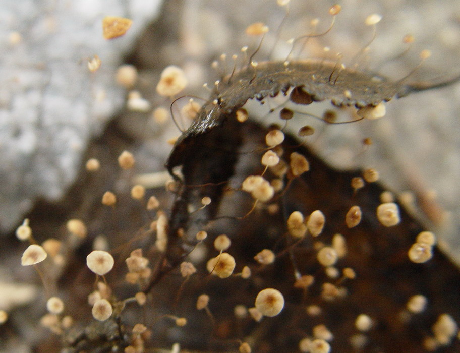 (Lieber Herr Z. nicht böse sein und nicht wieder über den unseriösen User in einer seriösen Pilzzeitschrift schreiben) Ja und dann müßte ich berichten, dass alle dieser mehr als hundert Pilze auf ganzen 5 zusammenhängenden Pappelblättern wuchsen und die Hüte so groß waren, dass ich mir meine Lesebrille aufsetzen musste um sie zu erkennen. Ich bin sicher, dass Marasmius minutus PECK 1873 meist nur übersehen wird und doch öfter fruktiziert als dies die Literaturangaben und Floren belegen.