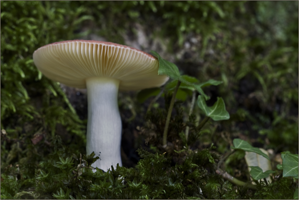 Die Huthaut ließ sich fast komplett abziehen, nur in der Mitte blieb ein Stück hängen. Das Sporenpulver ist hellocker. Russula puellula würde ganz gut passen. Allerdings gilbt das Flesich nicht. Dafür sind die Lamellen etwas gegilbt nach dem Absporen. Vermutlich liege ich meilenweit daneben *lach* Für Tipps bin ich dankbar.