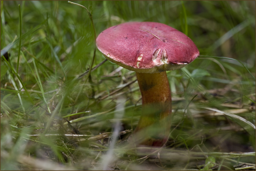 Im ersten Moment dachte ich an einen Saftling (wegen der intensiven Farbe) aber ein Blick unter den Hut enthüllte Röhren.