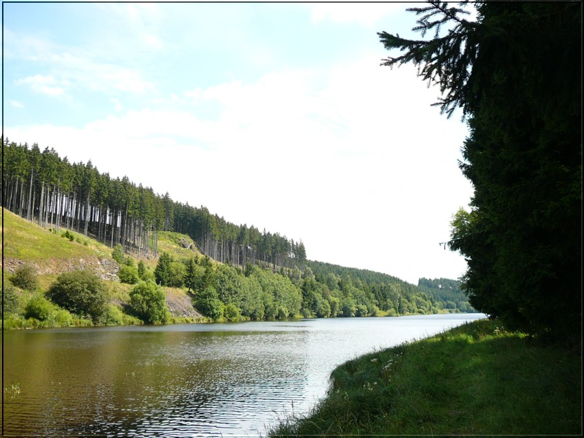 Heute waren ADO und ich am Rückhaltebecken Königshütte, Fichtenwald Höhe 450m. Die geplante Runde "Blauer Bruch" wurde wegen Pilzemangel kurzfristig verlegt. Unser Ziel war heute: Leptoporis mollis, den ich dort schon mehrmals finden konnte. Gleich vorneweg zu sagen: auch hier am Stausee war es ziemlich dürftig mit dem Pilzvorkommen und der seltene Porling konnte nicht wiedergefunden werden. Hier einige Eindrücke: