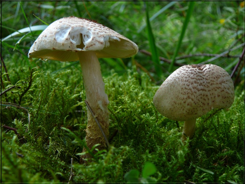 Lepiota spec., wird noch untersucht; Kalkschotter, Fichte