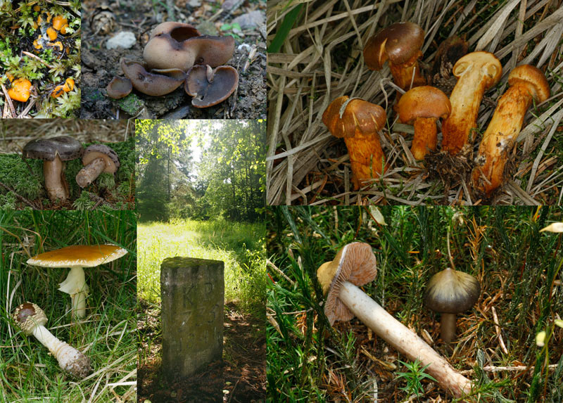 ich habe die Diskussion mit Interesse verfolgt. Wir waren heute auch im Gebiet und haben eine größere Wanderung fast bis zum Carlshaus unternommen. Deinen Cortinarius haben wir auch gefunden. Der Diskussion ist nichts hinzuzufügen. Mein Foto ist nicht so rot wie das Deinige und passt neben den Mikromerkmalen im Bild ganz zu der Abb. MJ3. In ST ist. C. limonius bisher nur nur im Brockengebiet gefunden worden. Der schönste Fund des heutigen Tages dürfte aber Phaeocollybia festiva gewesen sein, der bisher auch nur aus dem Brockengebiet bekannt ist (siehe rechts unten im Bild).