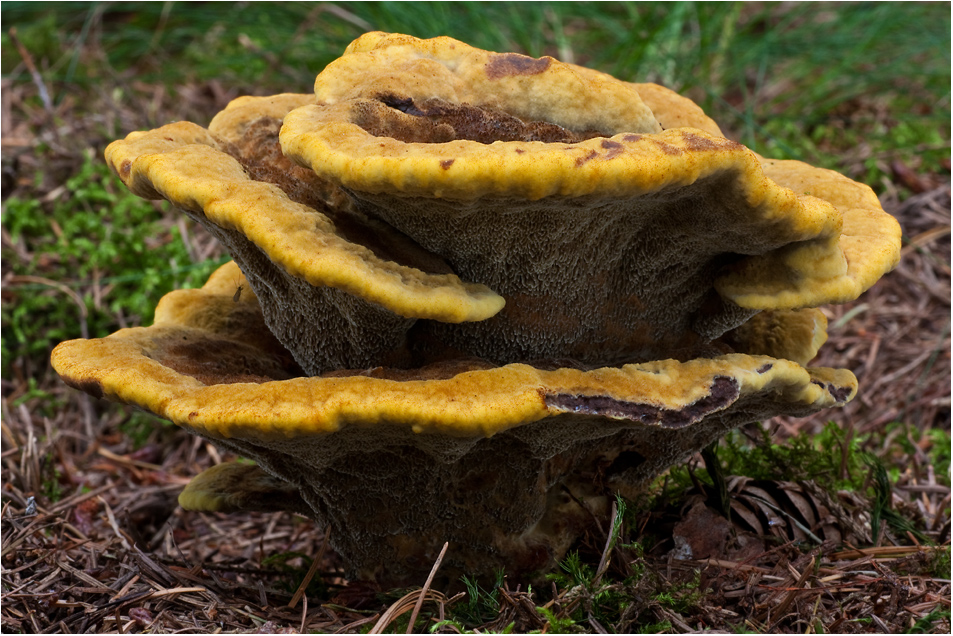 und dieser ein Kiefern-Braunporling (Phaeolus spadiceus):