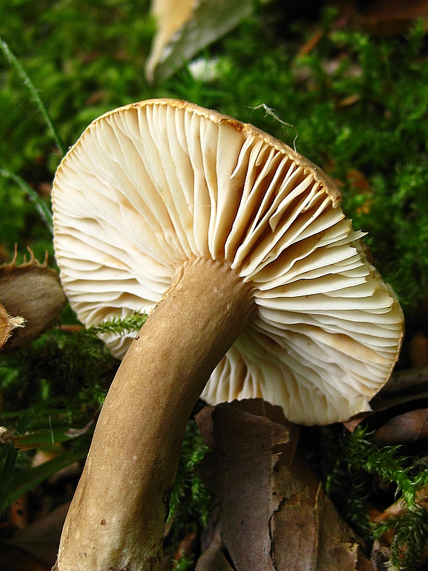 @ Stephan, ja ich hatte den wissenschaftlichen Namen vergessen hinzuschreiben: Lactarius fuliginosus. Und hier ein Bild von der Unterseite (allerdings nicht von dem auf dem Bild, sondern von einem Nachbarn)