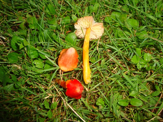 Ich hätte das für den Gelbrandigen Saftling gehalten, wären da nicht diese Weißlichen Lamellen gewesen. Wer kann mir da helfen?