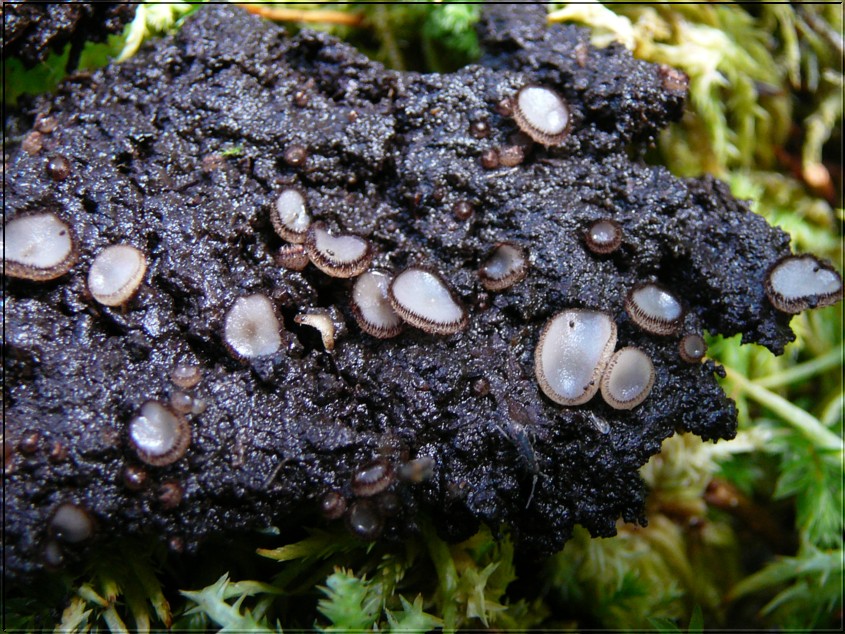 Die ausgewachsenen Fruchtkörper im Durchmesser nicht über 7mm. Sporen größtenteils spindelig, einige schmal elliptisch; im Mittel 21x9,8ym , mit vielen kleinen Tropfen ; Randhaare mehrfach septiert, Länge bis 650ym , Paraphysen sehr schlank und an den Enden ganz leicht verdickt, kaum wahrnehmbar. Wird die Bestimmung richtig sein, oder gibt es noch ähnliche Arten? LG Hartmut