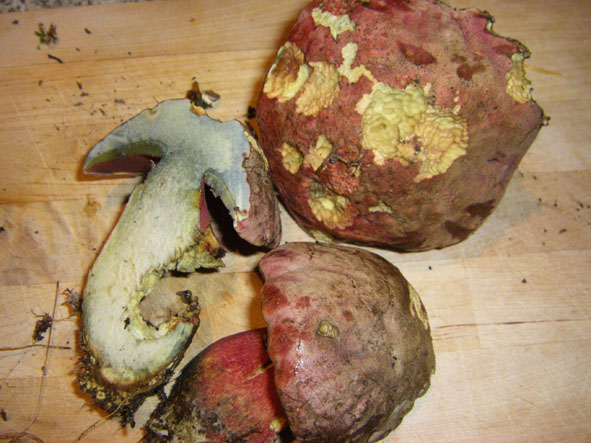 Auf der Suche nach meinem Handy, der mir gestern im Wald abhanden kam (und wohl noch da liegt), habe ich mehrere Exemplare von diesem Röhrling gefunden. Leider hatte ich keine Kamera bei, weil das nicht unbedingt ein Vergnügsgang war. Also schnell zu Hause geknipst. Die schönere Exemplare stehen noch im Wald. Ein großer und 2 oder 3 kleinere sind noch zu bewundern. Könnt ihr mir den Pilz bestätigen? Die Röhren sind natürlich wunderschön purpur rot. Morgen suche ich nach dem Hardware nochmal und dann muss ich mich davon verabschieden. Klingeln lassen hat nichts genützt. Gruß - Rebecca