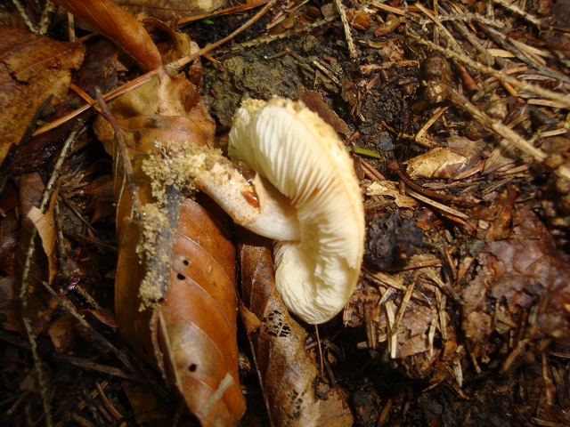 Ich glaube, da ist mir eine Bestimmung gelungen. Ausschlaggebend ist wohl der rötliche Saft gewesen, den ich anfangs festgestellt habe. Dazu auch ein Bild.