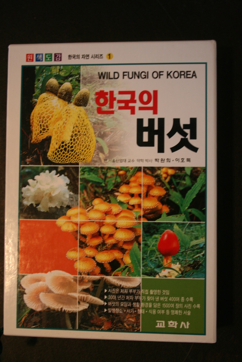 Nun noch das Umschlagfoto meines koreanischen Pilzbuchs. Allerdings gleiches Problem: Bis auf die lateinischen Namen ist alles auf koreanisch. Insofern erfolgte meine Bestimmung geher visuell...