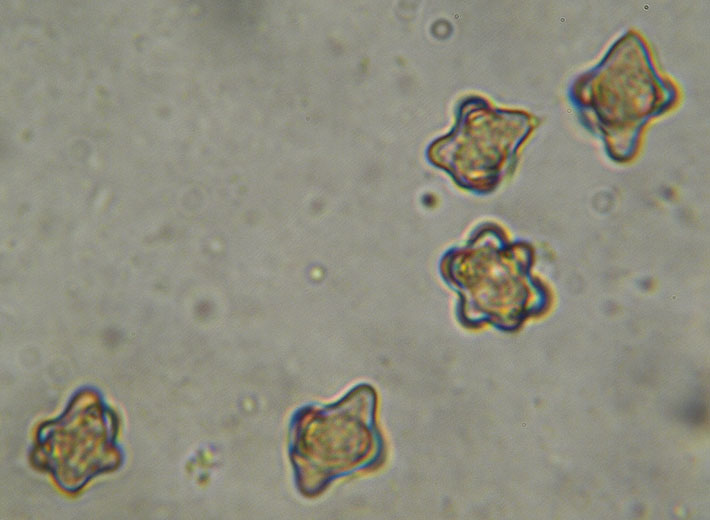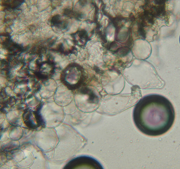 Erst vor wenigen Tagen wurde Inocybe pseudasterospora für Sachsen-Anhalt im Ostharz entdeckt und hier vorgestellt. Jetzt könnte es auch ein Neufund für Niedersachsen sein. Kennzeichnend sind die stark vorgezogenen Sporenhöcker