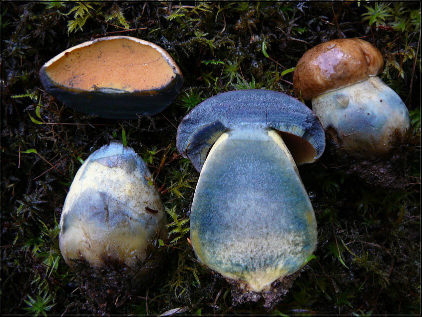 Boletus erythropus forma ?? unter DER Eiche hinter dem ersten Walkenrieder Teich. Sollte es dieser Röhrling sein, der im Tintling zu einigen unterschiedlichen Interpretationen geführt hat? Zumindest hat sich der Hut nach dem Transport in orangebraun umgefärbt, ähnlich queletii. Recht sonderbarer Pilz