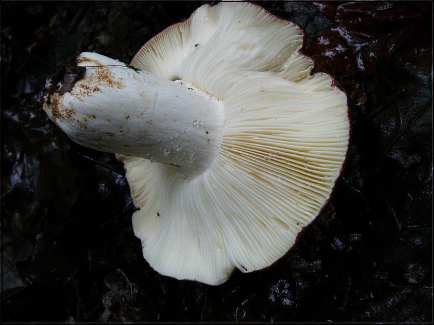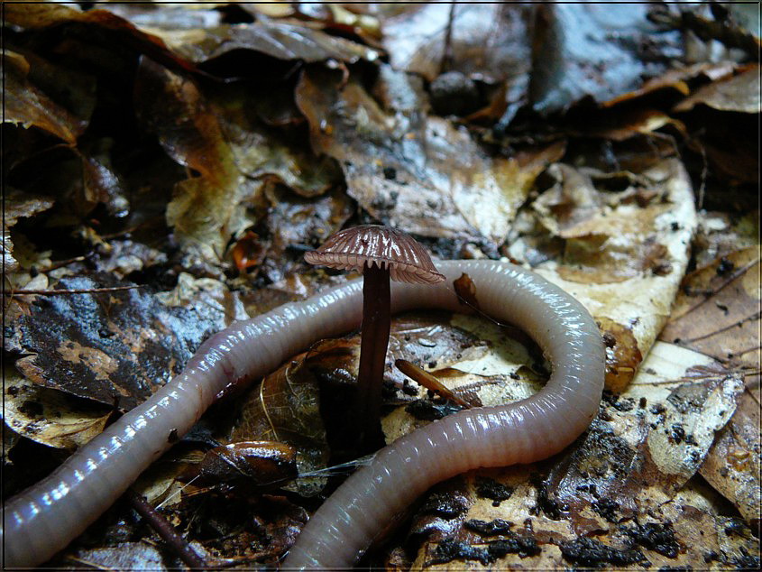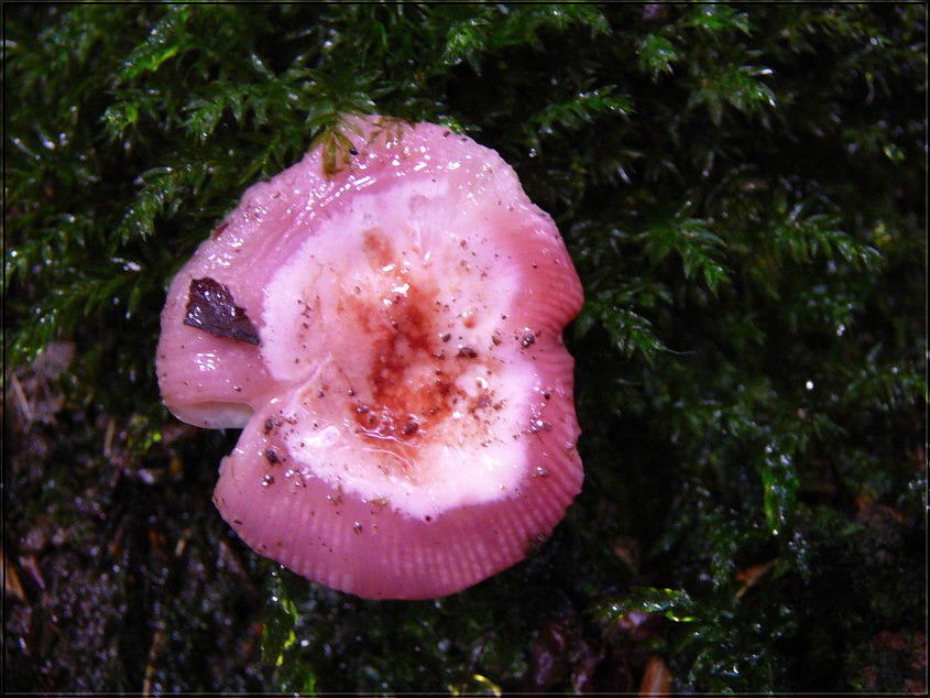 Mycena sanguinolenta ? dunkelrote Milch & gefärbte Lamellenschneiden; aber im Laubwald?