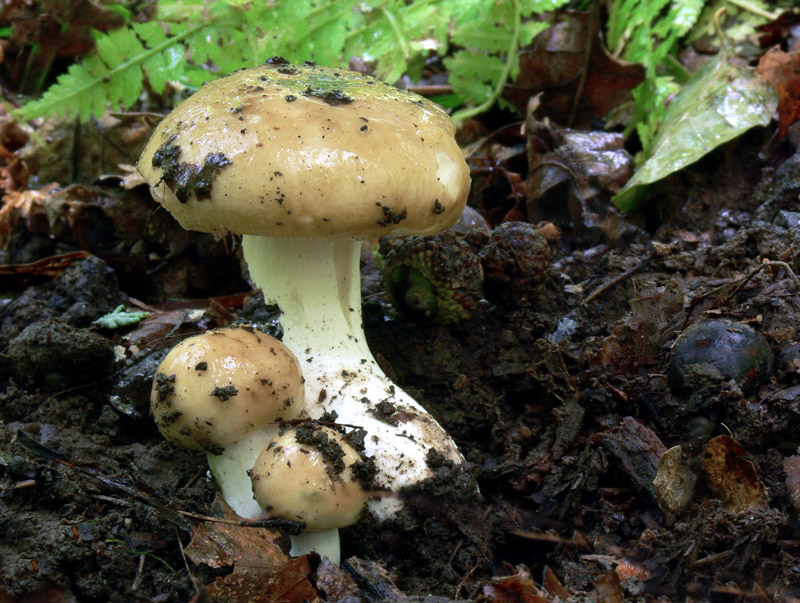 | Hallo Pilzfreunde, am Wochenende habe ich folgenden Täubling gefunden und auch mikroskopiert. Kann mir jemand sagen, ob ich mit meiner Bestimmung richtig liege oder ob auch noch andere Arten in Frage kommen: Russula cuprea (Purpurbrauner Dottertäubling) ? Fundort: Gersweiler Wald, MTB 6707 lehmiger Boden, Eichen und Rotbuchen Beschreibung: Hut: Durchmesser ca. 7 cm ockerbräunlich, leicht oliv Mitte eingedellt, feucht leicht schmierig, Rand leicht gerieft Fleisch: weiß, Geruch nicht feststellbar, Geschmack: anfangs mild, dann schärfer Lamellen: jung weiß bis creme, dann dottergelb Stiel: Durchmesser 2 cm, Länge 5 cm, wattig ausgestopft Sporenpulver: dottergelb (80Y, 40M gem. PdS) Chemische Reaktionen: Eisensulfat: leicht rosa