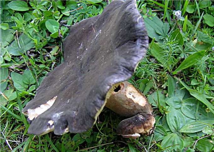: pechschwarz war der noch nie da habe ich ein Gegenbeispiel auf dem Foto : Wenn es im reinen Nadelwald war, kanns nur der sein. Laut Großpilze BW wurde etwa Lactarius fuliginosus schon im Südschwarzwald (Feldberg, Belchen) unter Fichte gefunden. Natürlich ist hier Lactarius picinus möglich, das will ich ja nicht ausschließen; ich wollte nur sagen, dass ich mir in diesem Fall nicht so bombensicher wäre, von wegen "kanns nur der sein". Freundliche Grüße